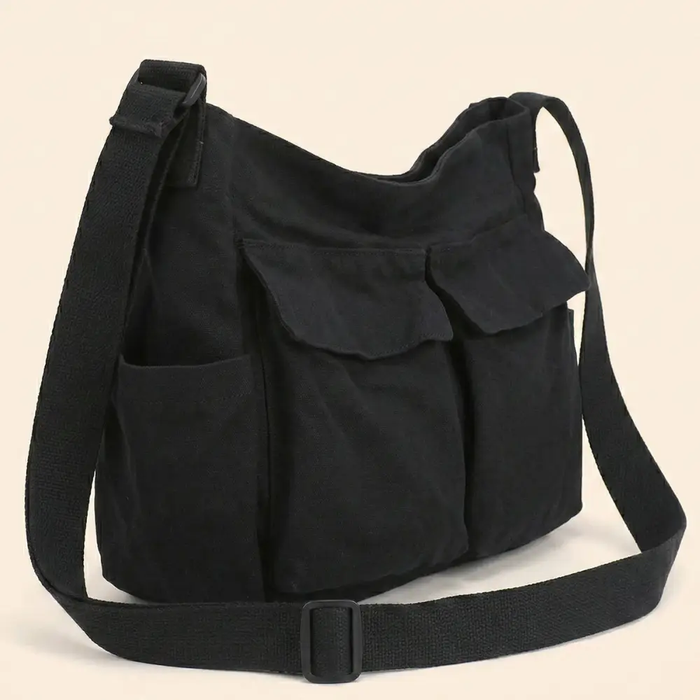 Le grand sac bandoulière pour les cours ultime : une toile noire ultra-robuste, un format XXL et un look vintage unisexe pour transporter tout votre matériel (et plus encore) sans jamais faiblir ✨. Découvrez aussi ce modèle en : [Vert Khaki] 💚
