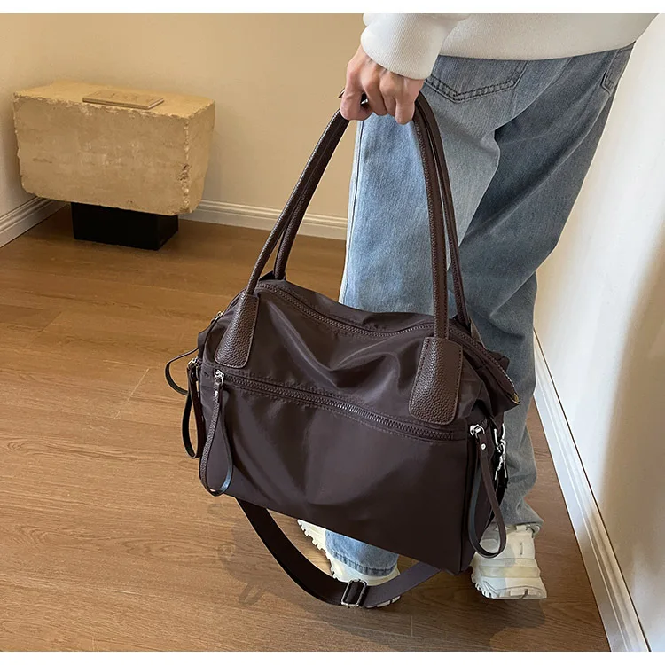 Finitions premium et style minimaliste ✨ Nos clientes sont unanimes : la qualité de ce grand sac de cours solide se voit dans les détails. Les fermetures éclair sont épaisses et robustes (elles ne vous lâcheront pas !), et les bretelles sont renforcées. Les jolies bordures en cuir véritable viennent rehausser son esthétique vintage. Décliné en Noir, Café ou Kaki, c’est l’accessoire intemporel qui s’associe aussi bien à un jean décontracté qu’à un manteau habillé.