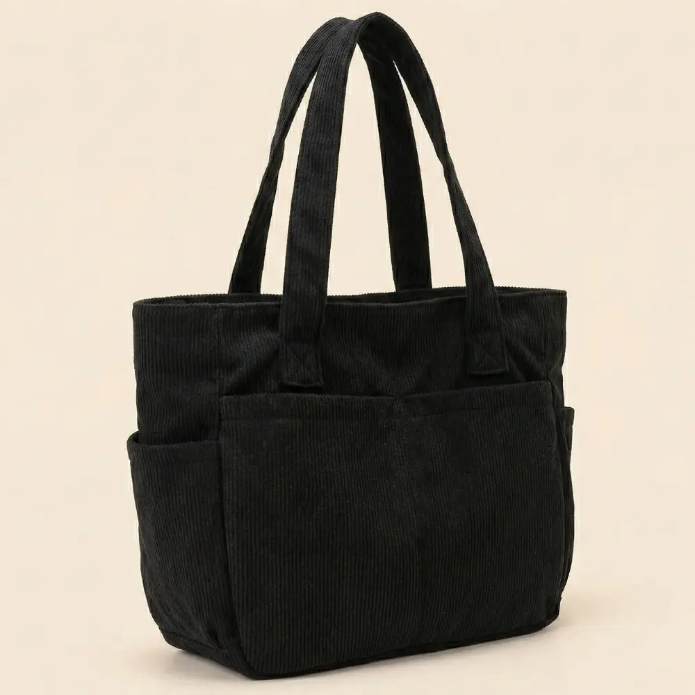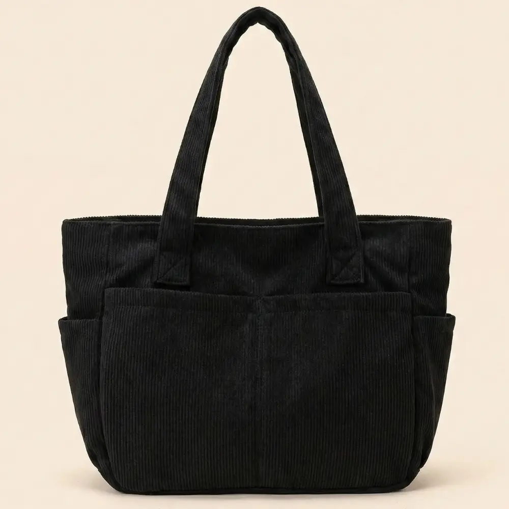 Le sac de cours étudiante par excellence : un cabas flexible en velours côtelé noir, doux et luxueux ✨, offrant un confort absolu et une élégance décontractée pour vos journées de fac 📚. Découvrez aussi ce modèle en : [Marron] 🤎 | [Vert] 💚