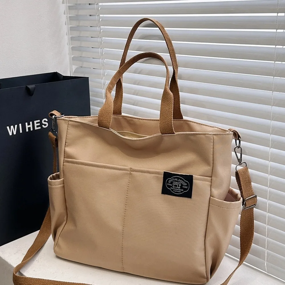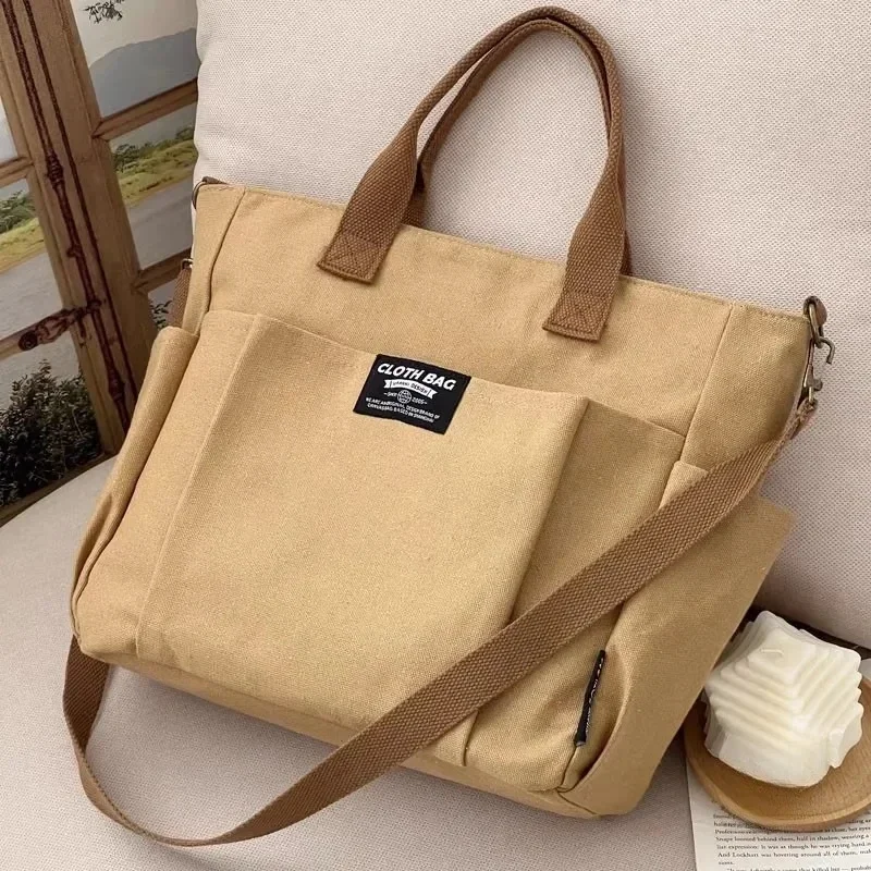 Le sac de cours pour femme minimaliste par excellence : un cabas en toile rigide, léger et spacieux, avec une bandoulière pratique pour une journée de fac ou de lycée bien organisée 📚. Couleurs disponibles : Khaki | Noir | Blanc Cassé (Off White)