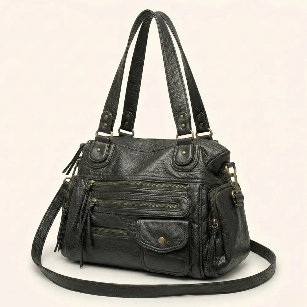 "Un beau sac a main pour les cours pour son prix. Cuir souple, aucune couture qui depasse, bonne finition. La doublure et dure, a l'intérieur ya deux compartiment - un avec fermeture eclair, lautre sans."